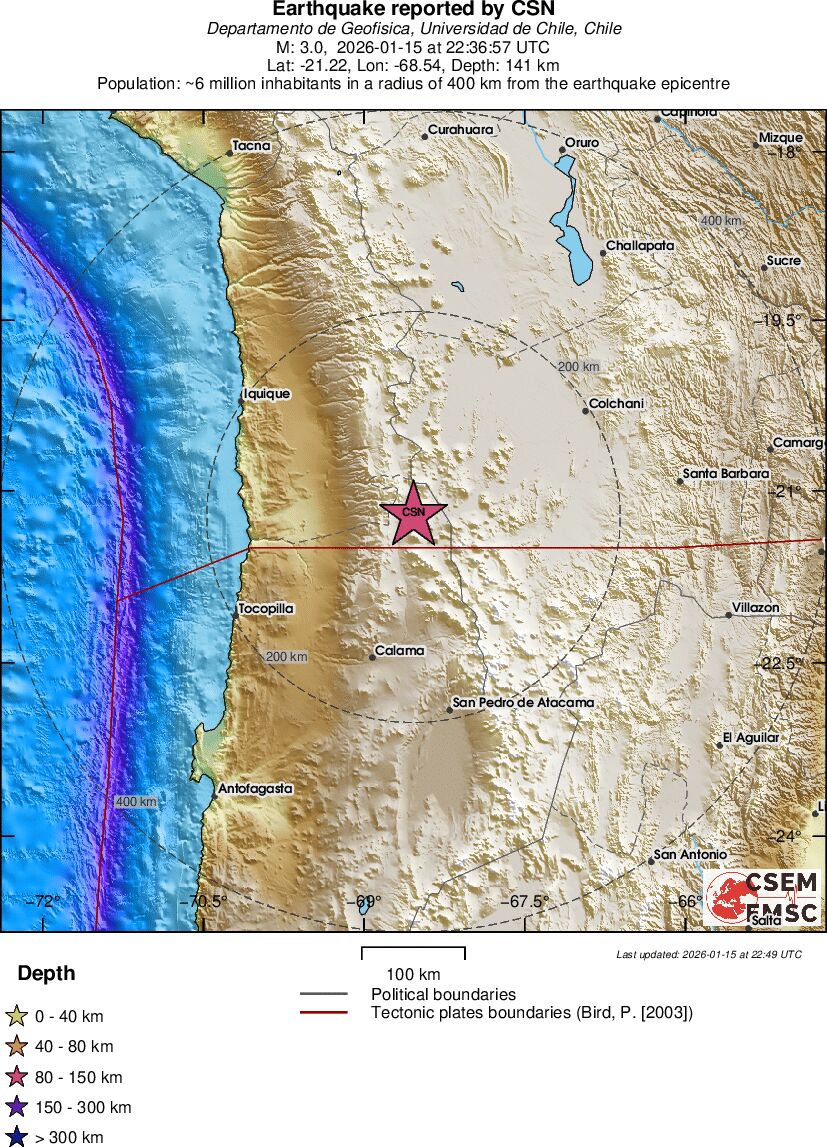 | 3 | 141.1 | 6674 | 23:36 | Link | Geringer Erdbeben - ANTOFAGASTA, CHILE - Gestern |