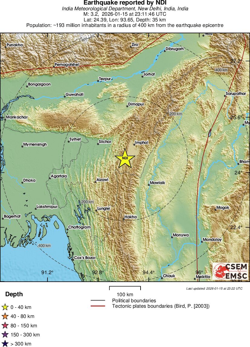 | 3.2 | 35 | 4885 | 00:11 | Link | Geringer Erdbeben - MANIPUR, INDIA REGION - Heute |