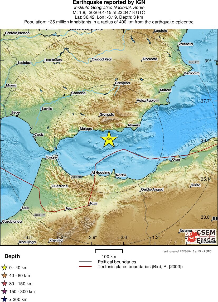 | 1.8 | 3.3 | 1135 | 00:04 | Link | Geringer Erdbeben - STRAIT OF GIBRALTAR - Heute |
