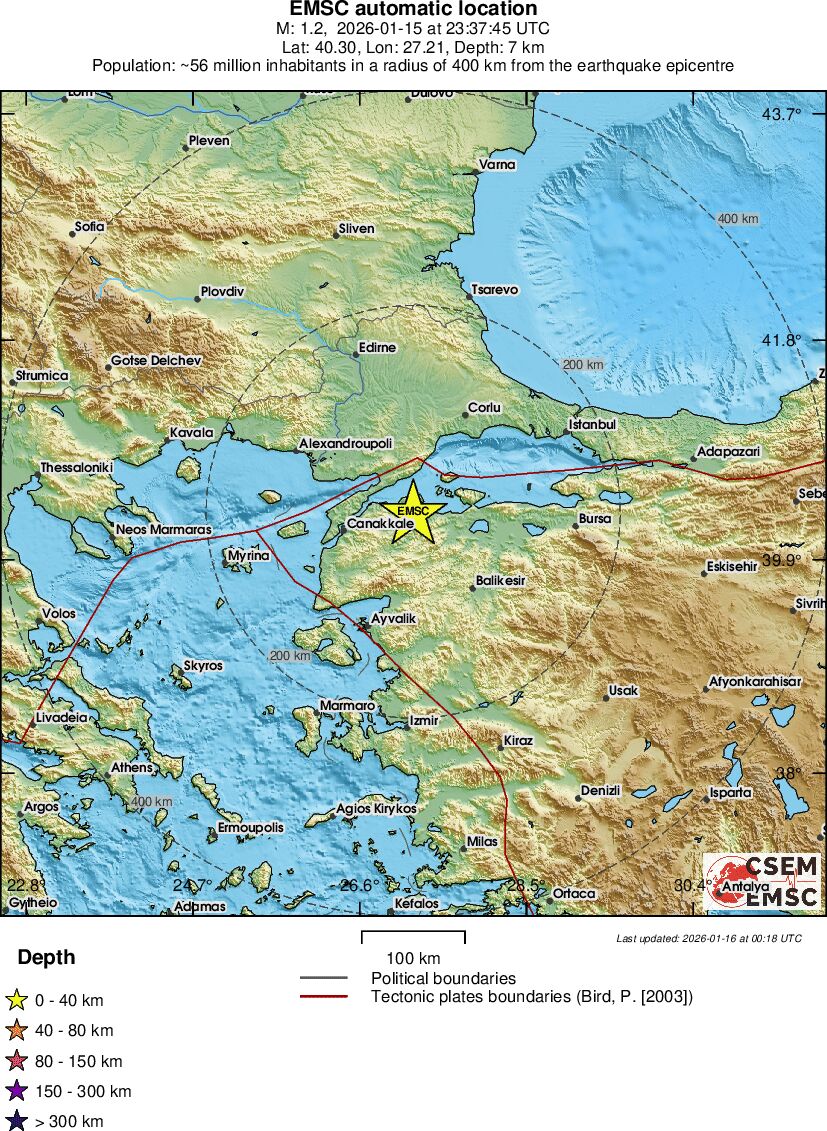 | 1.2 | 7.2 | 1358 | 00:37 | Link | Geringer Erdbeben - WESTERN TURKEY - Heute |