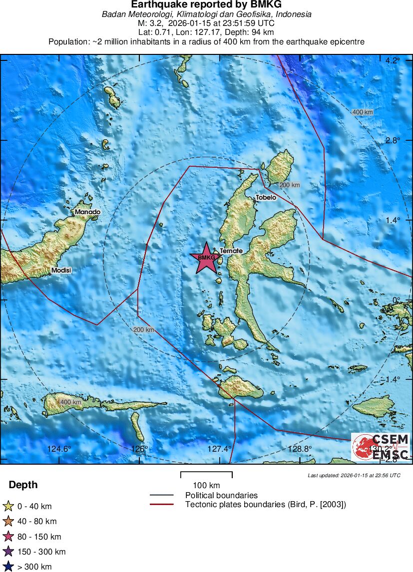 | 3.2 | 94 | 7531 | 00:51 | Link | Geringer Erdbeben - HALMAHERA, INDONESIA - Heute |