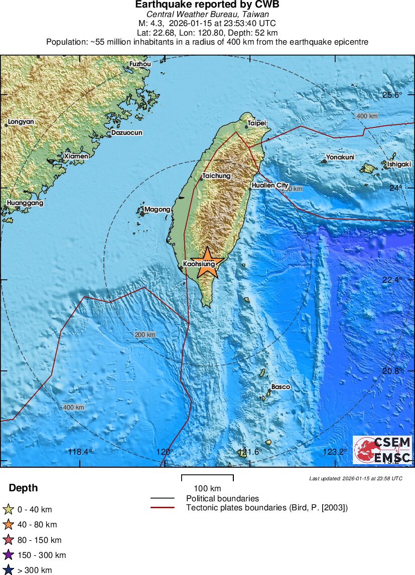 | 4.3 | 51.7 | 6024 | 00:53 | Link | Leichtes Erdbeben - TAIWAN - Heute |