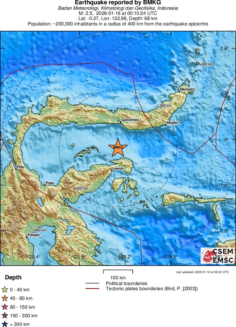 | 2.5 | 68 | 7426 | 01:10 | Link | Geringer Erdbeben - SULAWESI, INDONESIA - Heute |