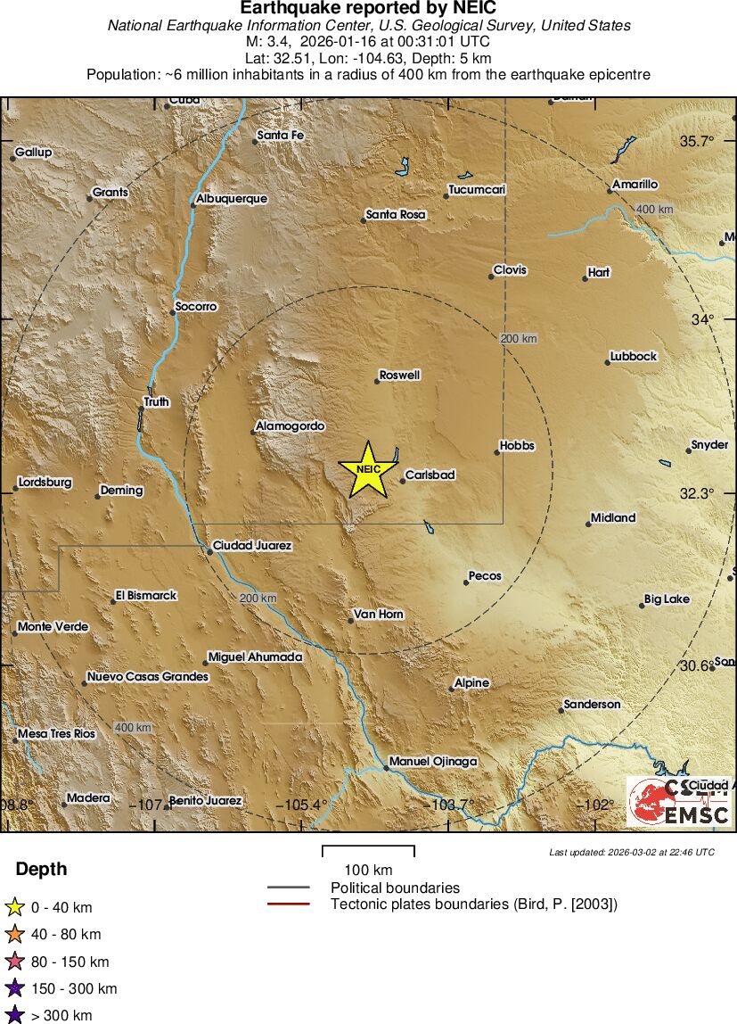 | 3.4 | 5 | 5193 | 01:31 | Link | Geringer Erdbeben - NEW MEXICO - Heute |