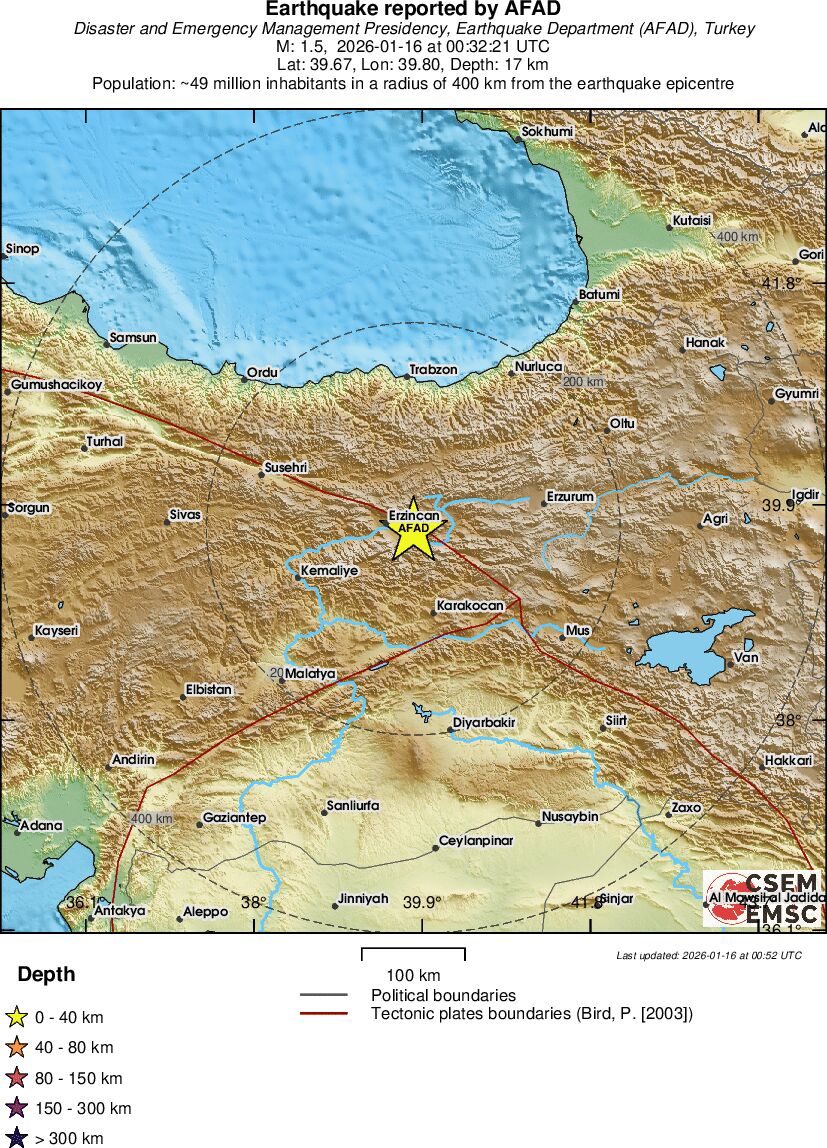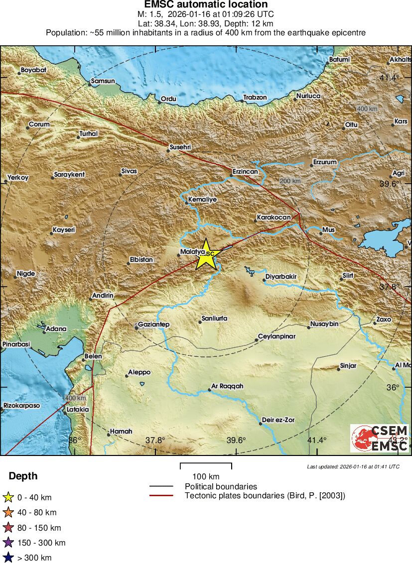 | 1.4 | 12.5 | 1912 | 02:09 | Link | Geringer Erdbeben - EASTERN TURKEY - Heute |