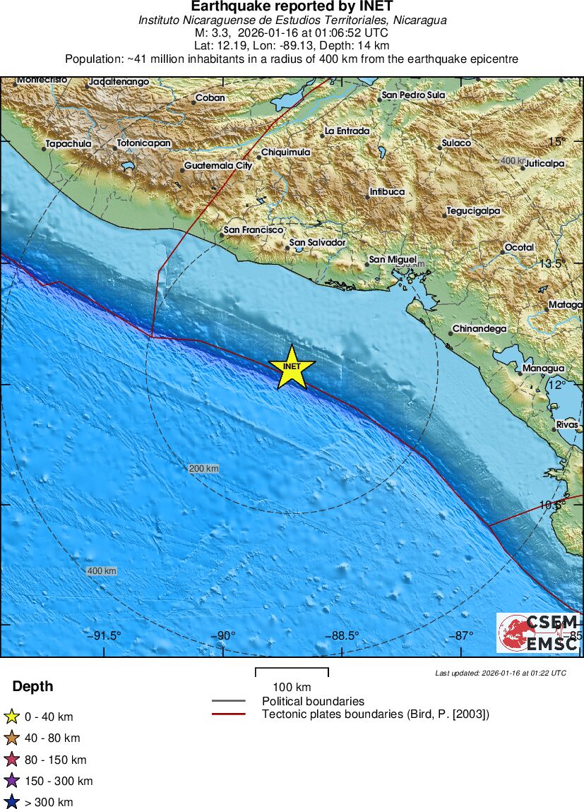 | 3.3 | 14 | 5695 | 02:06 | Link | Geringer Erdbeben - OFF THE COAST OF EL SALVADOR - Heute |